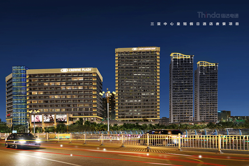 酒店照明離不開(kāi)智能與節(jié)能,所以藝術(shù)化的燈光設(shè)計(jì),還需要搭配智能化的燈光控制,完善酒店的照明體系。三亞中心皇冠假日酒店是信達(dá)電通對(duì)三亞主城區(qū)夜景提升項(xiàng)目中的重要建筑,酒店的燈光設(shè)計(jì)與三亞主城區(qū)的夜景定位相一致,并采用信達(dá)電通自主研發(fā)智能照明控制系統(tǒng),根據(jù)時(shí)段不同開(kāi)啟不同的亮燈模式。夜幕時(shí)段,整座酒店點(diǎn)亮,與周?chē)缆芬咕皽喨灰惑w。傍晚和凌晨時(shí)段,只點(diǎn)亮樓頂?shù)膹V告標(biāo)志牌和亮化樓頂結(jié)構(gòu),可達(dá)到遠(yuǎn)觀醒目的效果,實(shí)現(xiàn)了燈光的高利用率和節(jié)能效果。