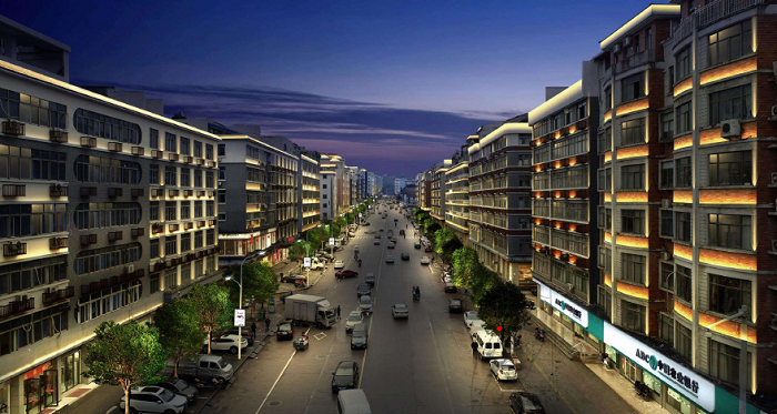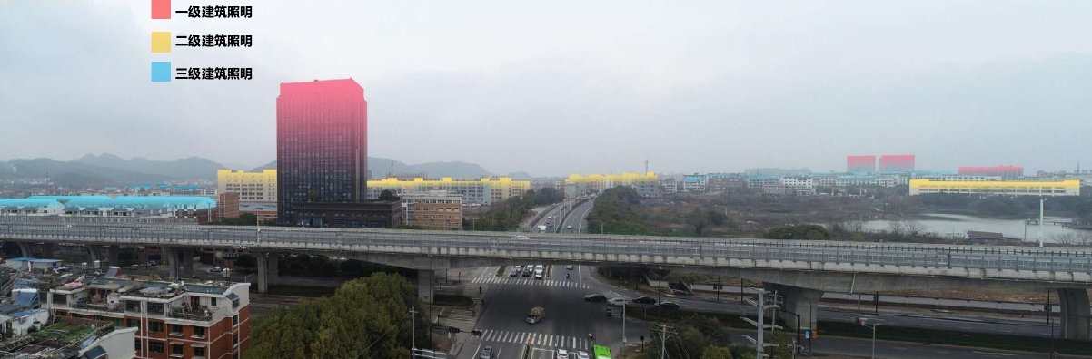 一級建筑照明:以鎮區范圍內商業建筑、公共服務類建筑以及企業辦公樓建筑定義為第一照明等級。