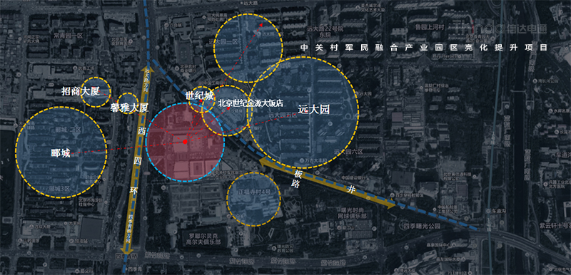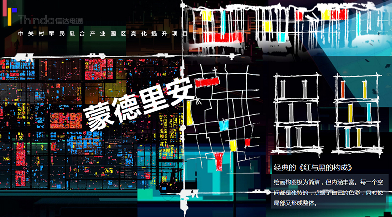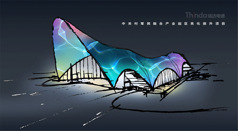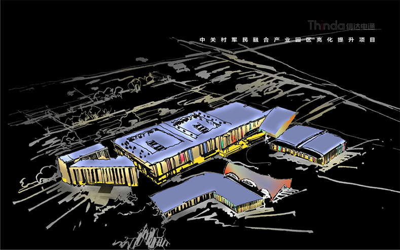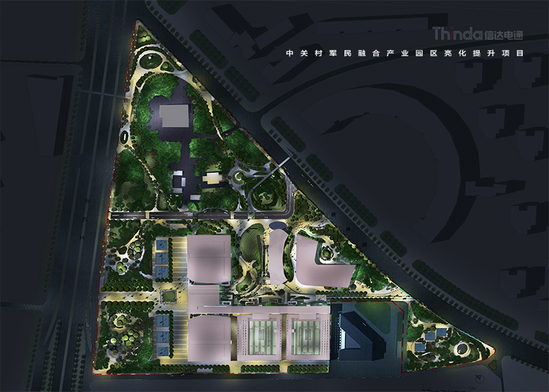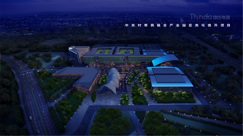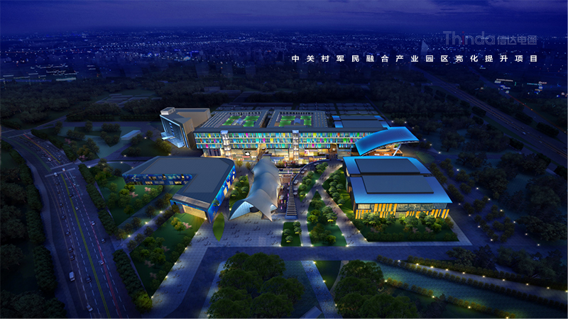 中關(guān)村軍民融合產(chǎn)業(yè)園區(qū)的亮化設(shè)計主要以建筑燈光為主體設(shè)計方向,用燈光的形式突出建筑結(jié)構(gòu)特點,突出時尚、創(chuàng)新、科技、新潮的融合產(chǎn)業(yè)園。園區(qū)建筑結(jié)構(gòu)整體簡潔、大氣,信達利用光影效果及景觀元素,打造東西、南北軸向的建筑縱身層次,整體以各種幾何形體組合而成,燈光在設(shè)計的同時尊重建筑本身的理念,優(yōu)化夜景氛圍,通過塊與面的結(jié)合,塑造一個大氣魄、大追求的文化產(chǎn)業(yè)新品牌。