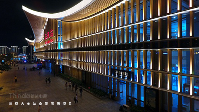 三亞火車(chē)站是海南島東、西環(huán)鐵路最南邊的一座火車(chē)站,是三亞市除機(jī)場(chǎng)外最重要的交通樞紐中心,三亞最為國(guó)際旅游城市,火車(chē)站的公共交通戶(hù)外泛光照明作為其城市名片也起到不可忽視的作用,在2016年的三亞“雙修”“雙城”城市亮化規(guī)劃中信達(dá)電通對(duì)三亞市火車(chē)站戶(hù)外泛光照明進(jìn)行了綜合的設(shè)計(jì)工作。