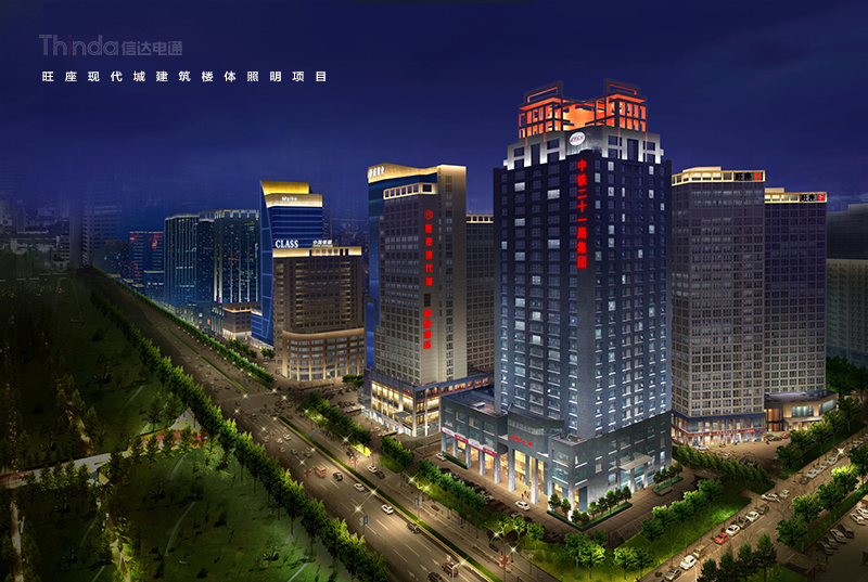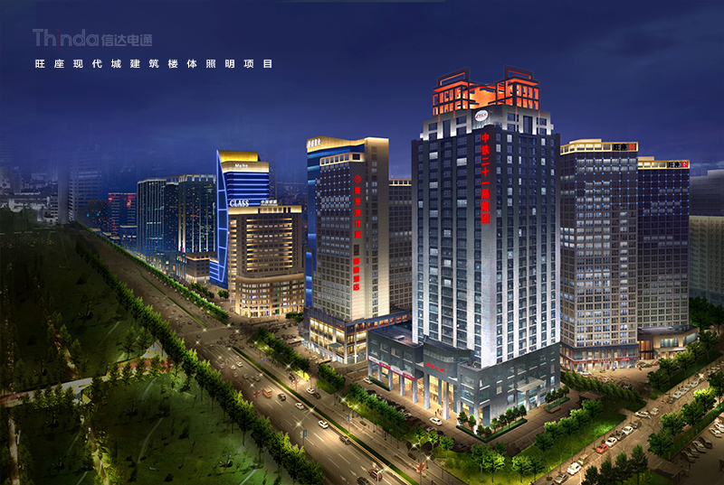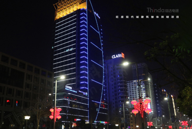 旺座現代城就位于西安的核心區(qū)域——高新區(qū),是一組大型商務辦公綜合空間群落,信達設計團隊在旺座現代城的夜景照明設計中增加建筑輪廓及頂部的照明,尊重建筑的結構,凸顯建筑特點。因現代城地理位置繁華,信達為其設計了節(jié)日模式、平日模式和節(jié)能模式三種亮燈方案。其中節(jié)日模式選擇洗亮旺座現代城的建筑頂部,其次用白色的洗墻燈照亮整個建筑的外立面輪廓,選用信達自主知識產權的產品星光燈點綴,給旺座現代城增加了濃濃的節(jié)日氣氛。