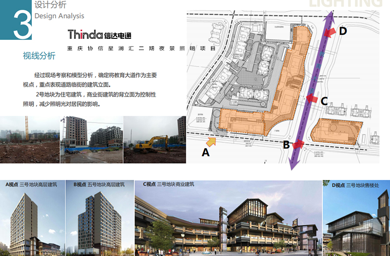 重慶商業綜合樓步行街夜景照明亮化設計項目位于重慶市巴南區左翼、濱江休閑帶、距離(渝中區)市中心10公里半徑范圍內,李家沱商圈、融匯半島頂部。